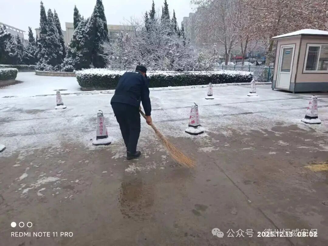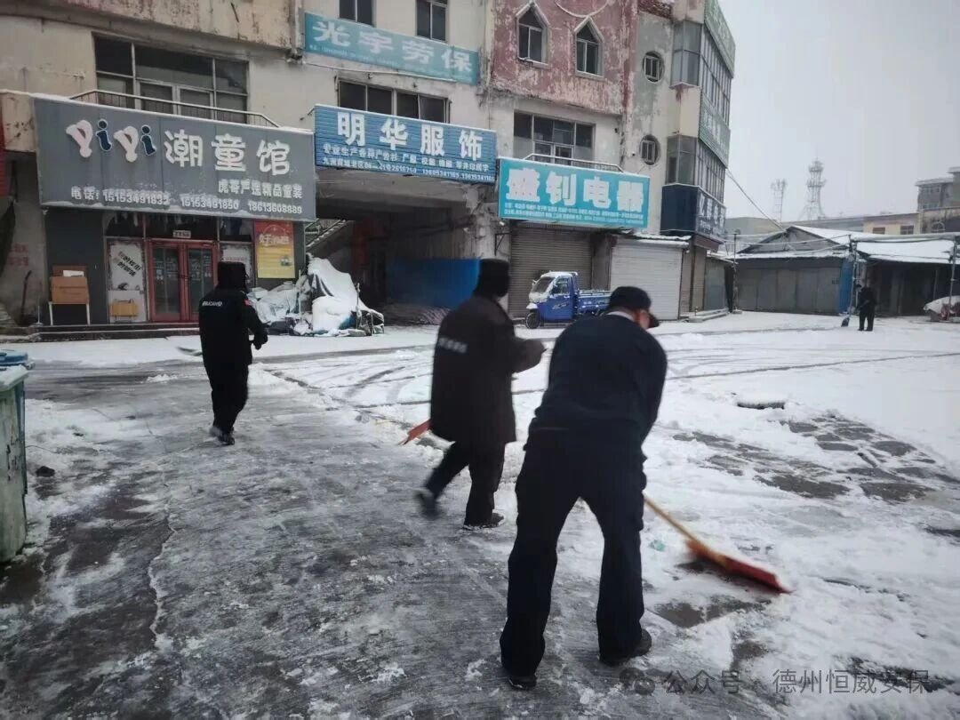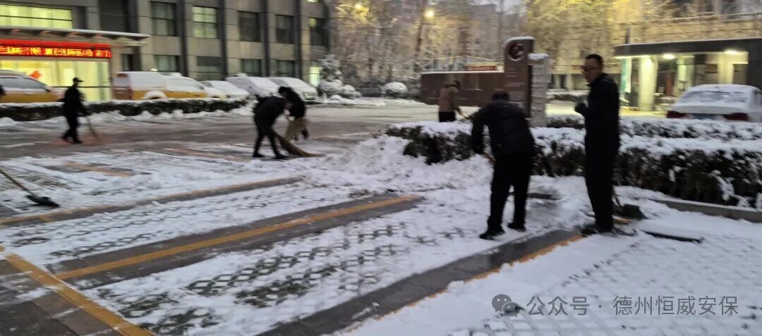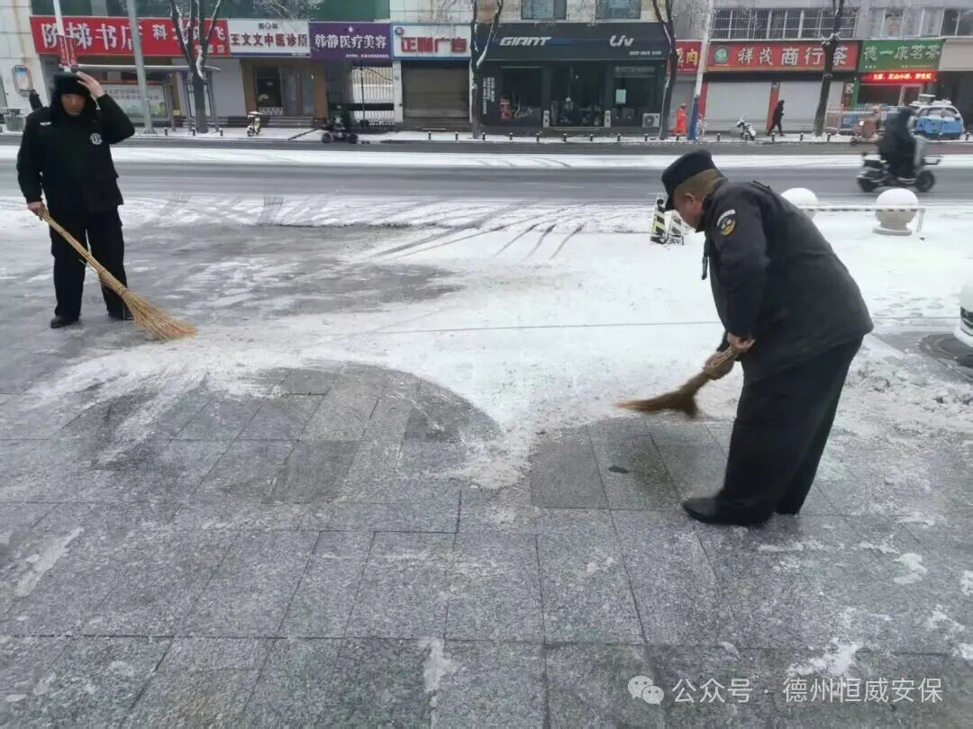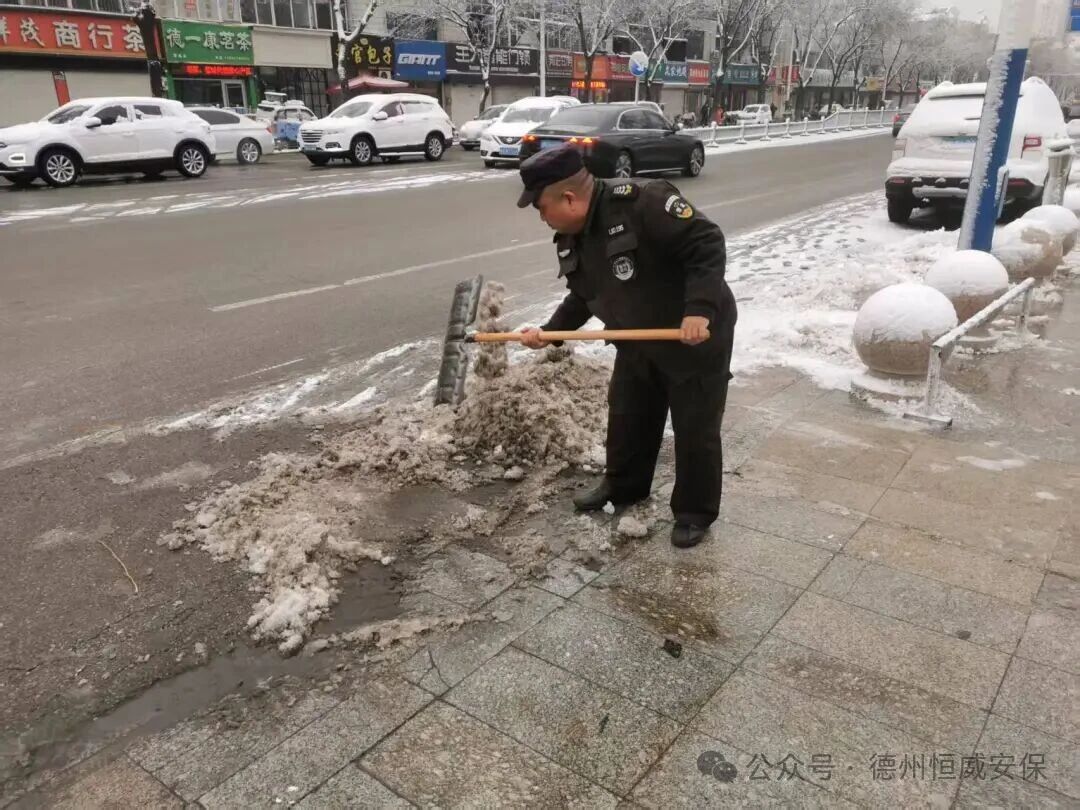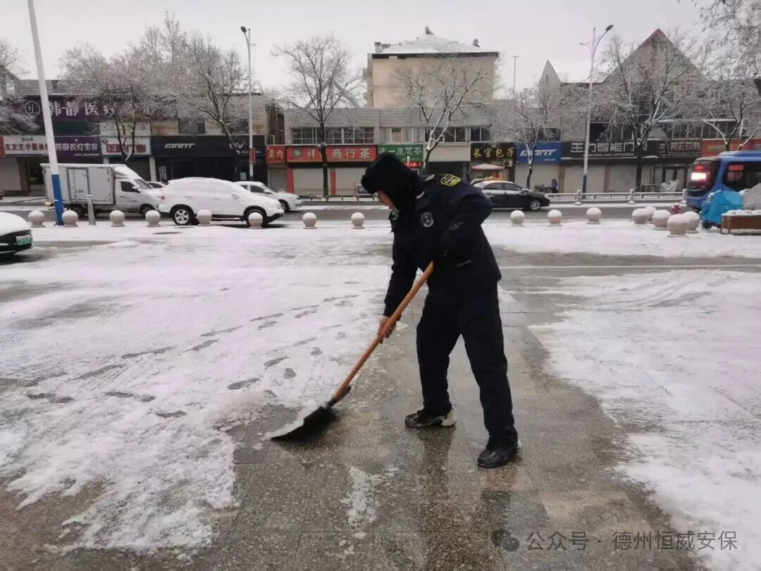 2025年12月12日,德州迎來(lái)今冬首場(chǎng)強(qiáng)降雪,氣溫驟降,道路積雪結(jié)冰,給市民出行與客戶單位正常運(yùn)轉(zhuǎn)帶來(lái)嚴(yán)峻考驗(yàn)。以雪為令,聞冰而動(dòng)!恒威安保公司第一時(shí)間啟動(dòng)應(yīng)急預(yù)案,各項(xiàng)目點(diǎn)保安員主動(dòng)投身掃雪除冰一線,用實(shí)際行動(dòng)詮釋“全心守護(hù),使命必達(dá)”的服務(wù)承諾。